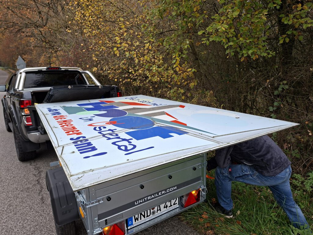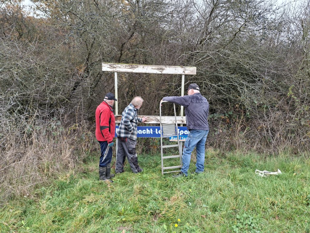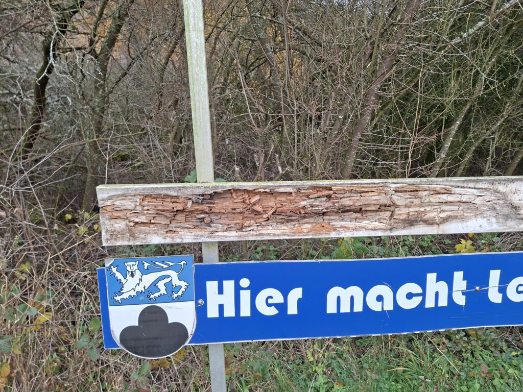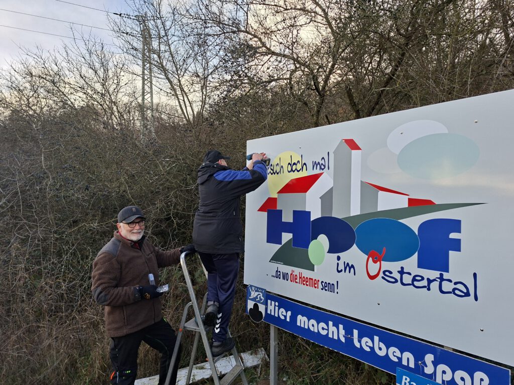 Ende Oktober, Anfang November wurde die Ortseingangstafel an der L 122 (Abzweigung Osterbrücken) erneuert. Sie war 2008, also vor 17 Jahren, aufgestellt worden und zwischenzeitlich in die Jahre gekommen. Auch die Grundträger und die Bodenbefestigung mussten erneutert werden. Die Arbeiten wurden von der IG Dorfwerkstatt Hoof durchgeführt. Die entstandenen Kosten wurden aus den Mitteln der Dorfverschönerung des Ortsrates beglichen.
